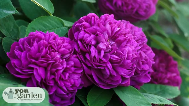 Flowering repeatedly from summer to autumn, 'de Rescht' produces generous clusters of blooms against deep green, textured foliage. Remarkably reliable and easy to grow, forming a compact shrub around 90cm tall and wide.