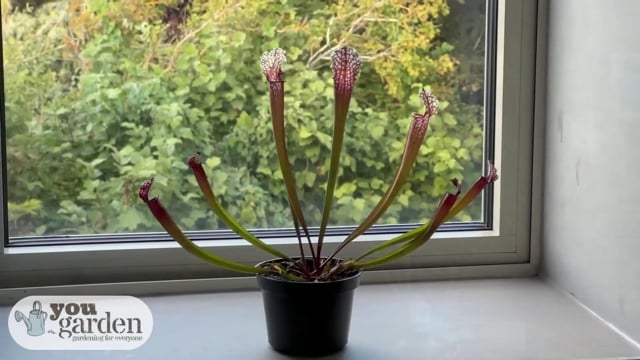 See a stark contrast in green to red colour on the trumpets of this low maintenance indoor plant. Also known as Sarracenia stevensii, this hybrid creates a display of many green 'pitchers', which are narrower and slightly less tall than close relatives. The cupped tips open up to reveal a captivating red coloration, and a slight mottled effect to the edges. Reaching high, flies and insects can get lured and trapped inside the cups, decomposing them in time.